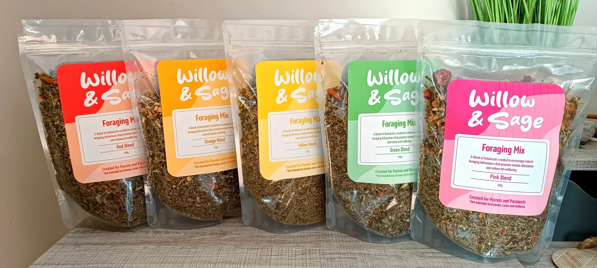 Our foraging mixes are blends of botanicals created to encourage natural foraging behaviours, that promote mental stimulation and enhanced wellbeing. We have a range of different blends to suit your birds personal preference.